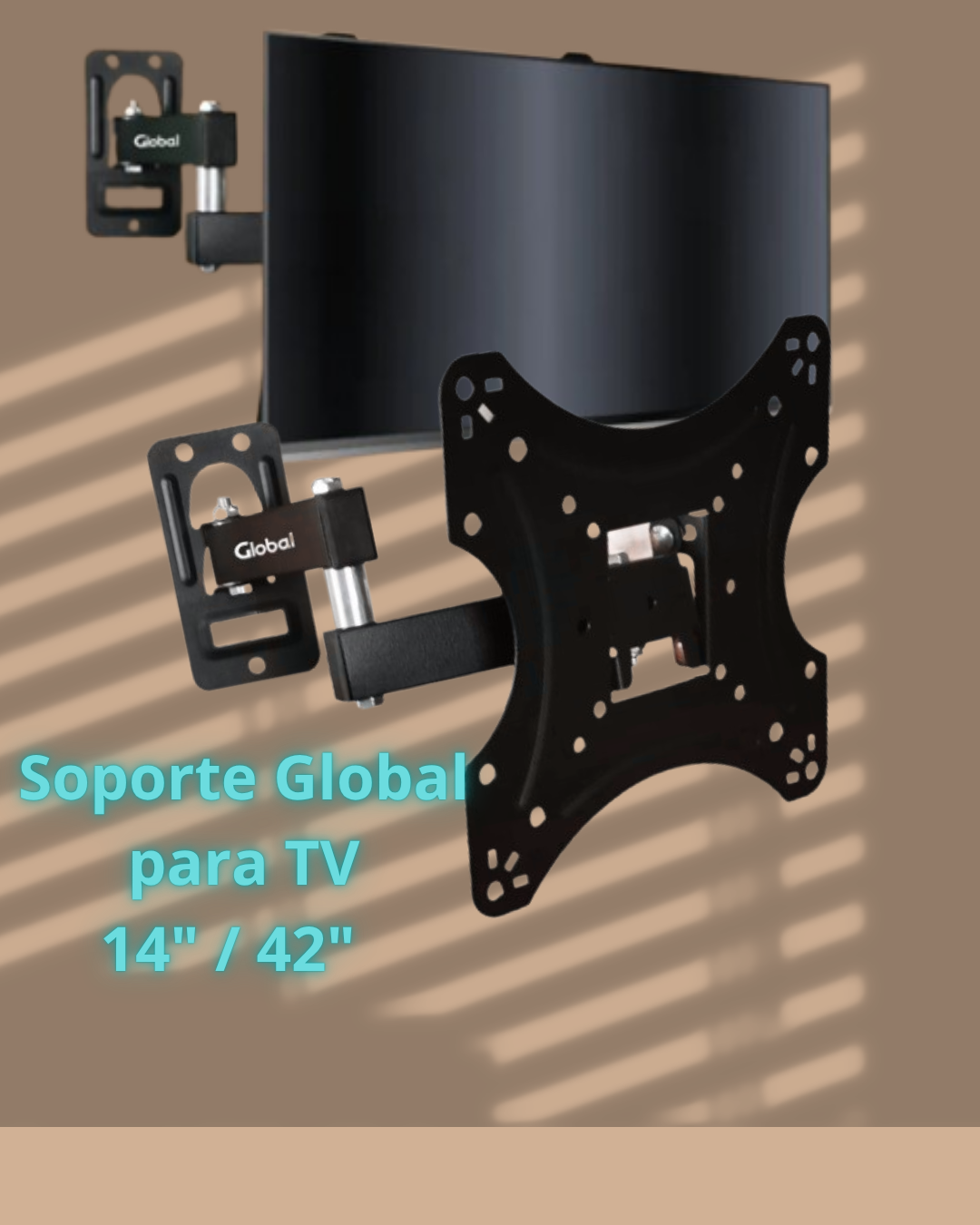 Soporte de TV articulado para 14” a 42”. VESA 200×200, inclinable ±15°. Perfil bajo de 65mm. Reforzado y fácil de instalar. Hasta 25kg.